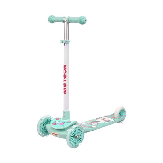 Hulajnoga balansowa Meteor to pojazd, który uatrakcyjni czas spędzany na świeżym powietrzu i będzie wspierał naukę równowagi i koordynacji ruchu od najmłodszych lat. Mechanizm skręcania pozwoli dziecku bezpiecznie balansować ciałem podczas jazdy, ucząc do kontroli nad pojazdem i prawidłowego zachowania na drodze. Kierownica nie skręca, a jedynie się przechyla. Aby skręcić, wystarczy przechylić się w odpowiednią stronę, razem z kierownicą. Konstrukcja z lekkich i wytrzymałych materiałów. Antypoślizgowy podest. Twarde koła o dobrej przyczepności do podłoża wykonano z odlewanego poliuretanu PUC. Łożyska ABEC-7 zapewniają cichą jazdę oraz trwałość. Wbudowane diody LED poprawiają widoczność na drodze oraz zwiększają bezpieczeństwo. W tylnej części hulajnogi umieszczono hamulec nożny, który działa poprzez dociśnięcie go stopą do koła. Certyfikat CE potwierdza pełną zgodność z rygorystycznymi wymaganiami normy EN71 1-3, dotyczącej jakości i bezpieczeństwa.
