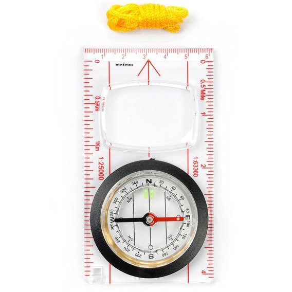 KOMPAS LINIJKA METEOR 110mm 8189/71007 Kompas Meteor z linikaą 110 mm Materiał: przezroczysty plastik,Średnica tarczy: 40 mmPrzeznaczenie: kompas do określenia stron świata oraz wyznaczania azymutu na mapie. Posiada obrotową tarczę zanurzaną w niezamarzającej cieczy oraz 2 wykresy do przeliczania skali mapy na odległość w kilometrach.