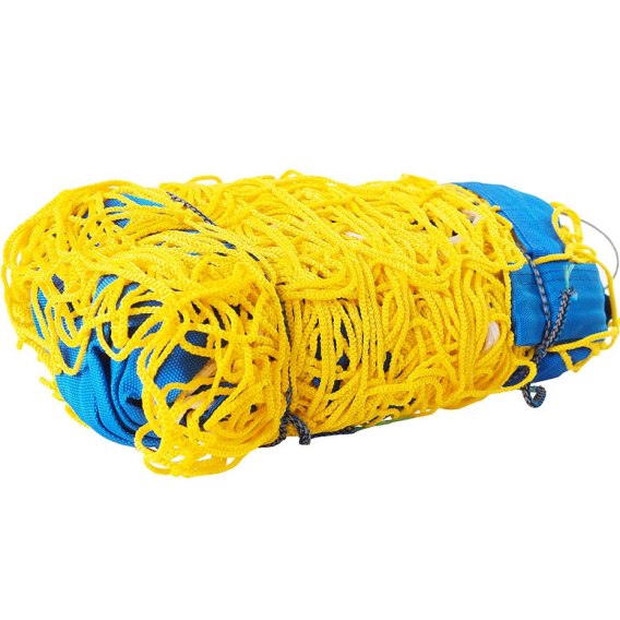 Markowa, treningowa siatka do piłki siatkowej plażowej – popularna. Siatka bezwęzłowa. Materiałowa linka naprężająca.