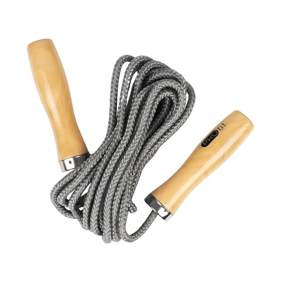 Skakanka Profit sprawdzi się podczas treningów lub zajęć szkolnych. Lakierowane, drewniane rączki.