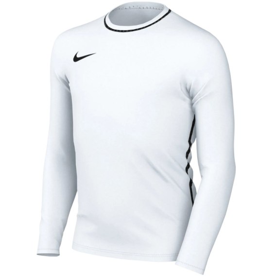 Koszulka dla dzieci Nike sprawdzi się podczas treningów. Technologia Dri-FIT odpowiada za uczucie suchości i wygodę. Lamówki z materiału o siateczkowej strukturze. Dopasowany krój z półokrągłym dekoltem i długimi rękawami naturalne układa się na ciele.