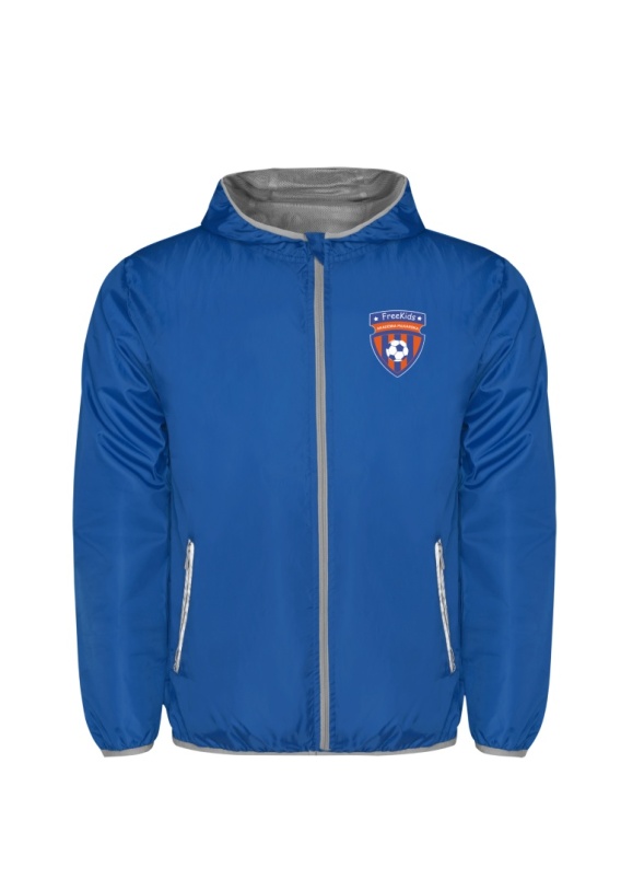 Dziecięca kurtka ortalionowa z kapturem, który można schować. Lekka, nieprzemakalna wiatrówka zapewniająca swobodę ruchów.